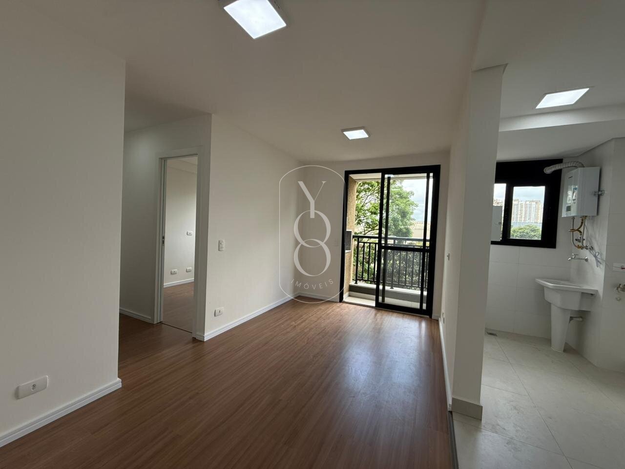 Com 44m² privativos, o imóvel oferece uma sala aconchegante integrada com a cozinha, mais sacada com churrasqueira a carvão, perfeita para reunir amigos e família.